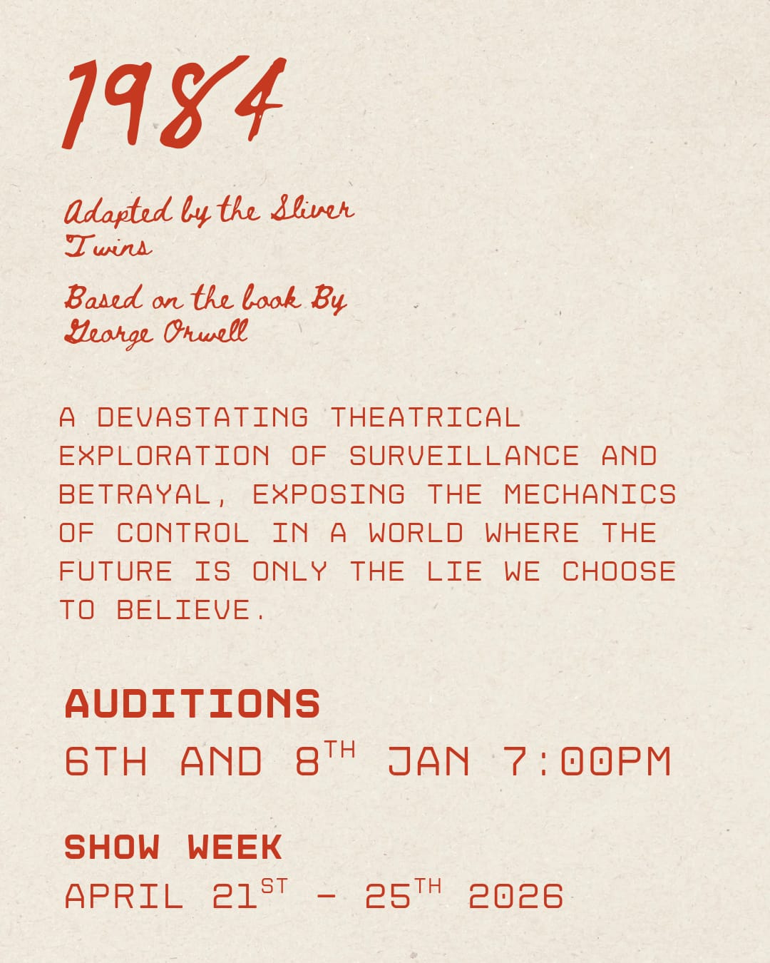 Come and audition for our brand new adaptation of George Orwell’s classic novel, 1984.